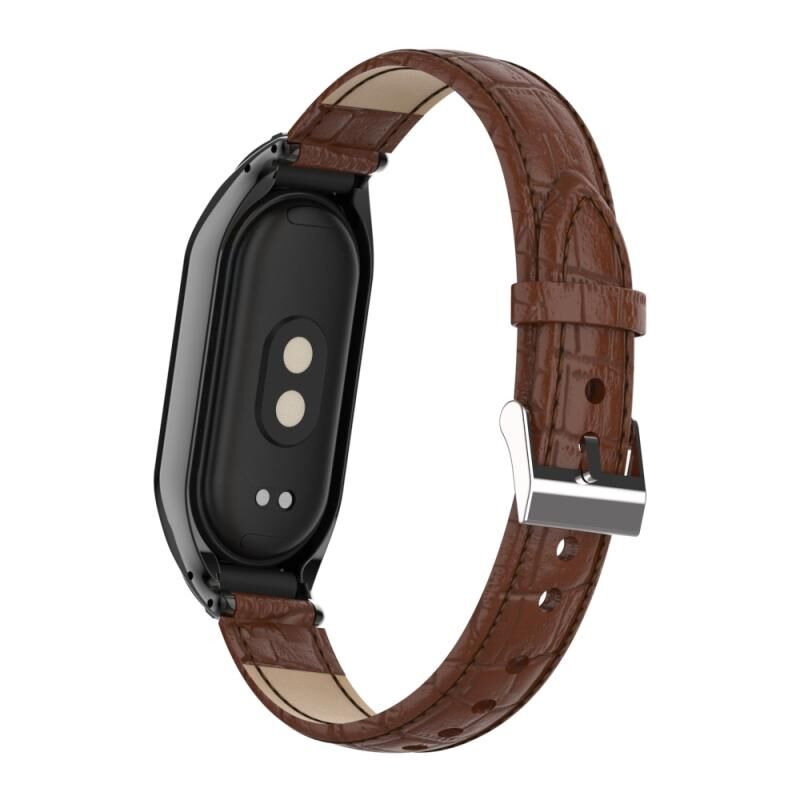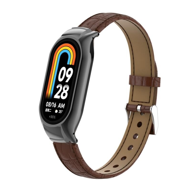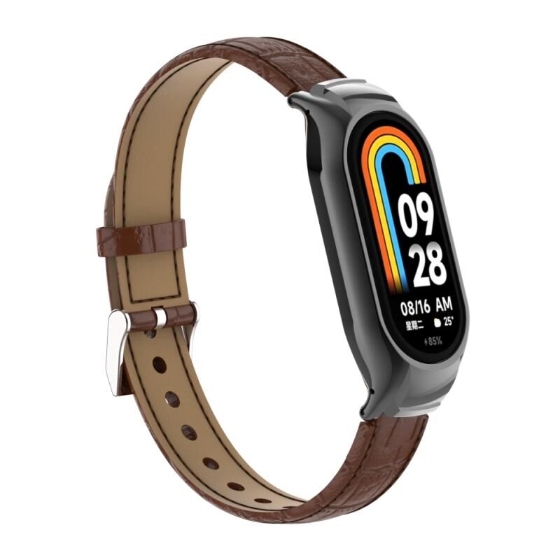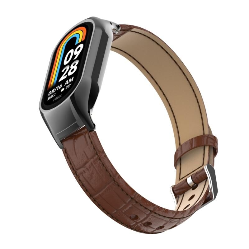 For Xiaomi Mi Band 8 Integrated Metal Case + Cocodile Texture Leather Watch Band(Brown)