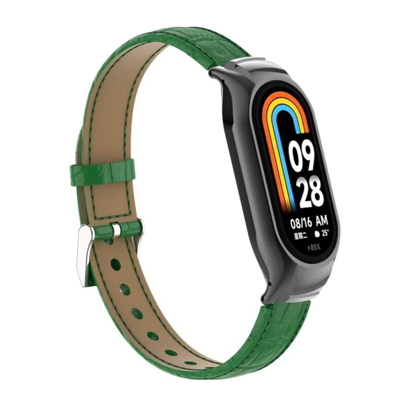 For Xiaomi Mi Band 8 Integrated Metal Case + Cocodile Texture Leather Watch Band(Green)