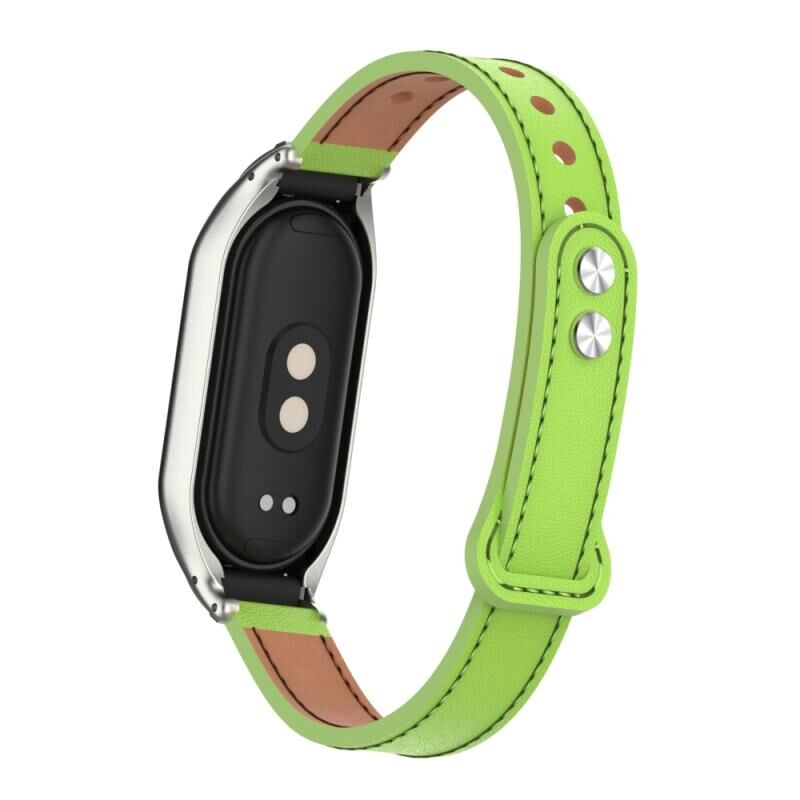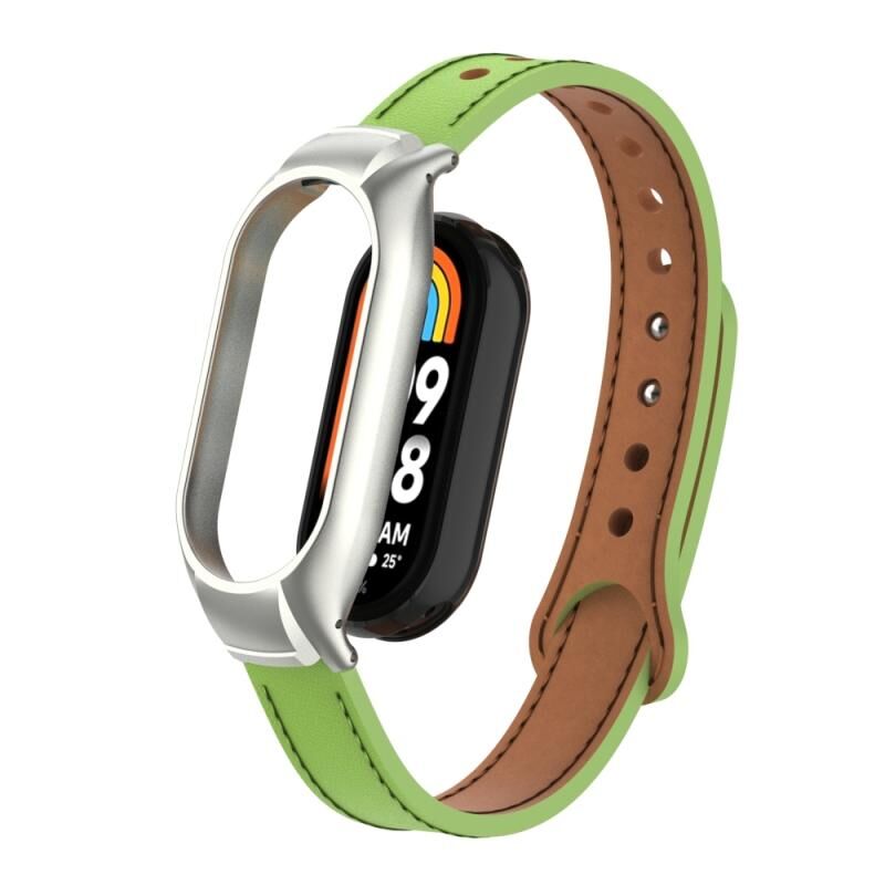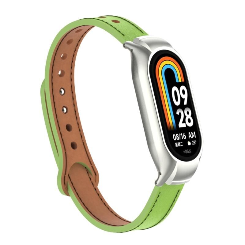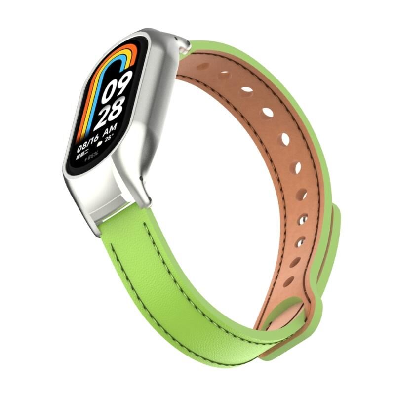 Για Xiaomi Mi Band 8 Ενσωματωμένη μεταλλική θήκη + Διπλό καρφί δερμάτινο λουράκι ρολογιού μικροϊνών (πράσινο)