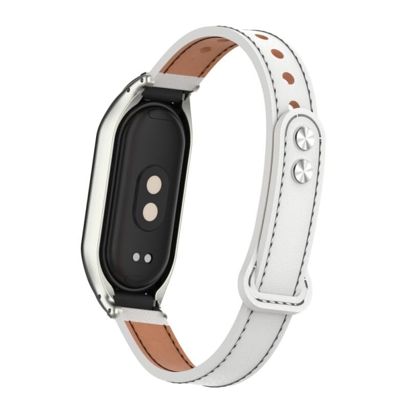 Για Xiaomi Mi Band 8 Ενσωματωμένη μεταλλική θήκη + Διπλό δερμάτινο λουράκι ρολογιού μικροϊνών (λευκό)