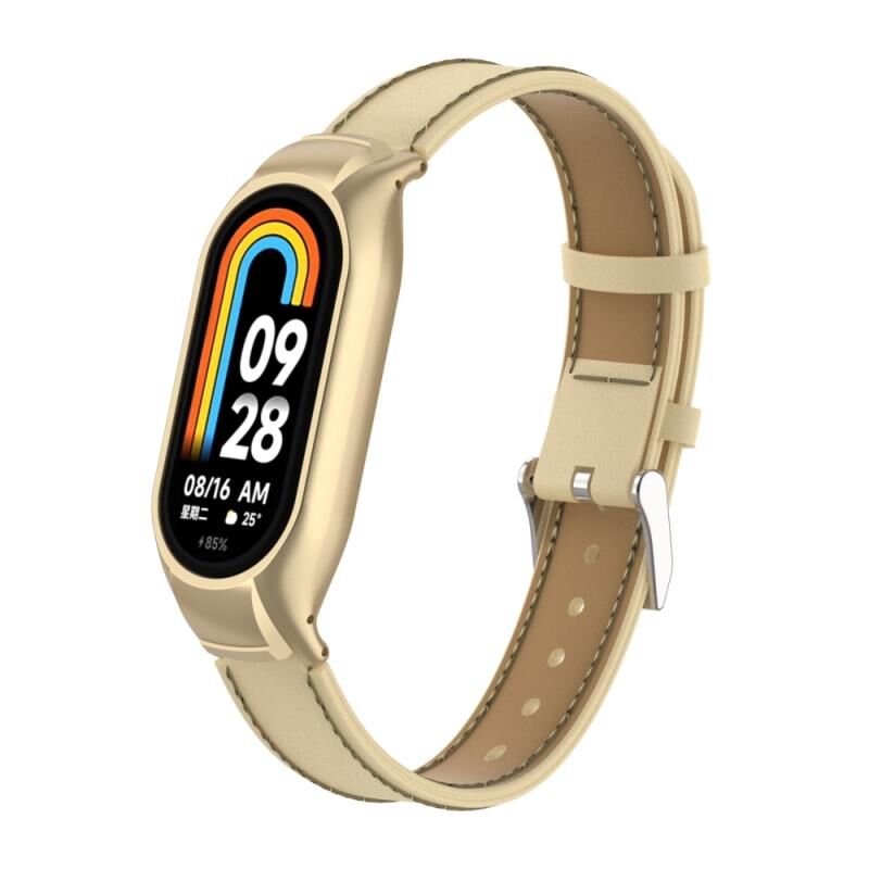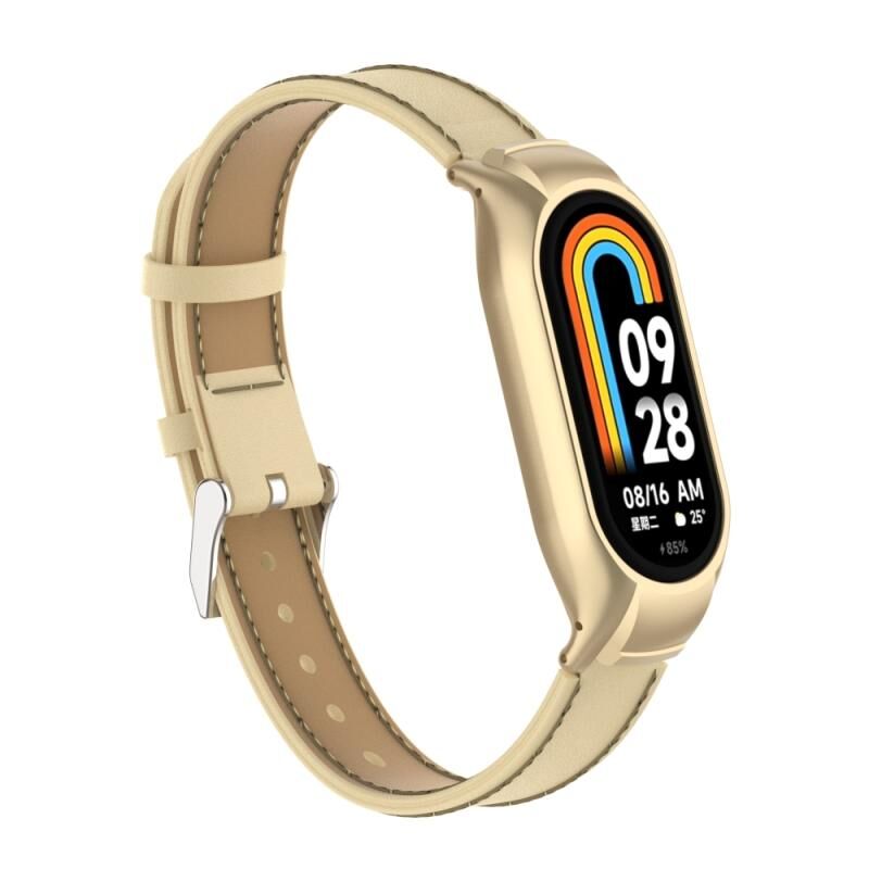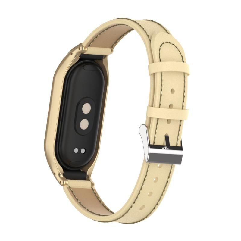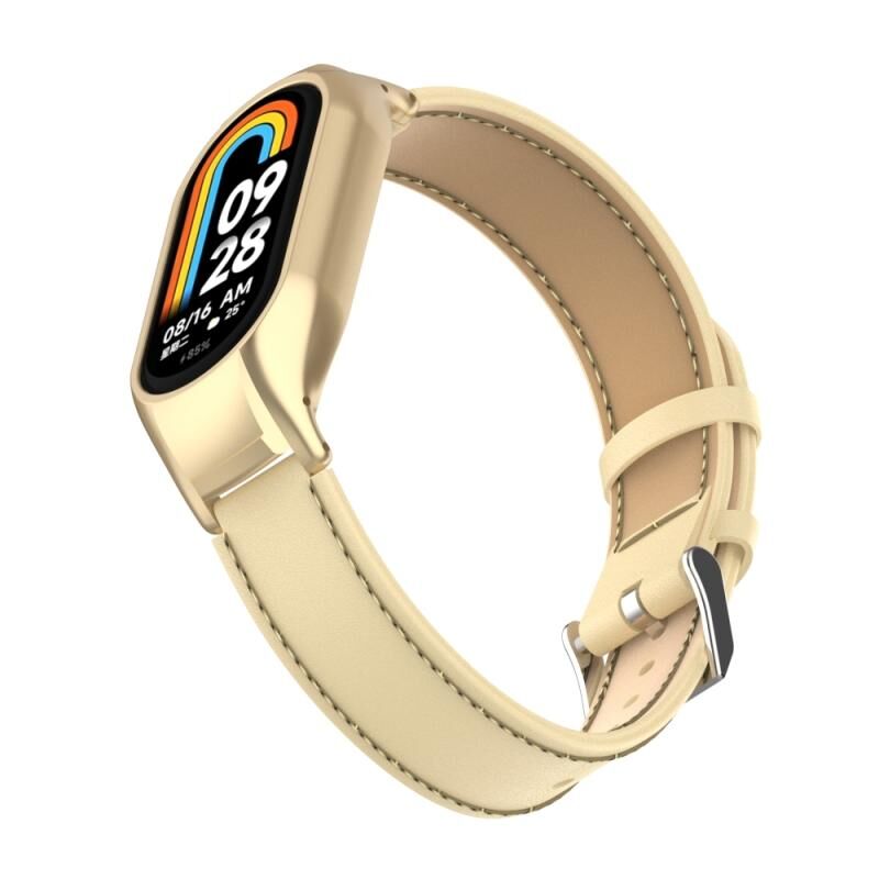 Για Xiaomi Mi Band 8 Ενσωματωμένη μεταλλική θήκη + δερμάτινη ζώνη ρολογιού μικροϊνών (σαμπάνια)