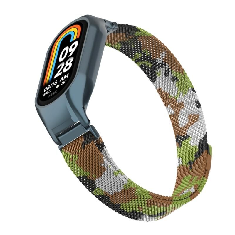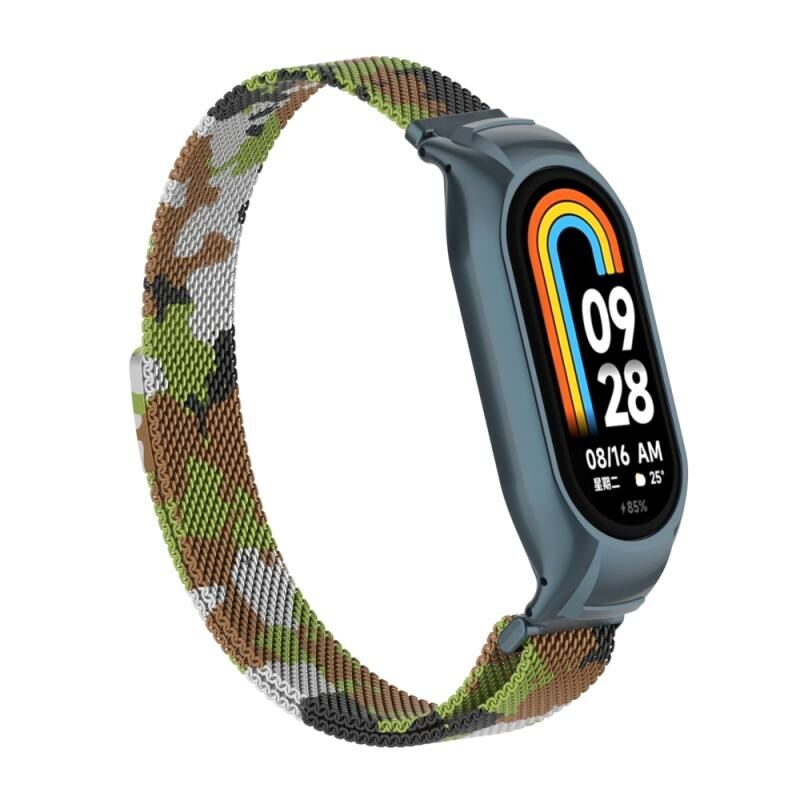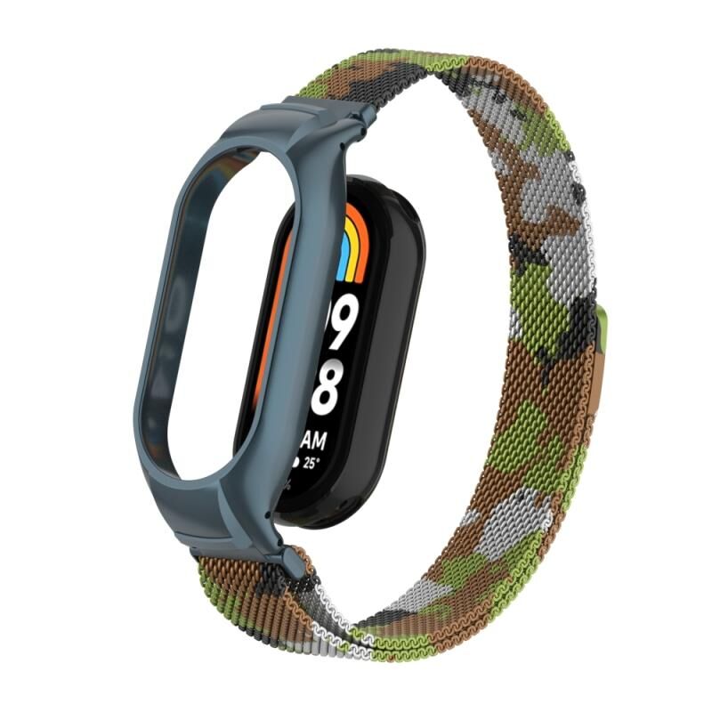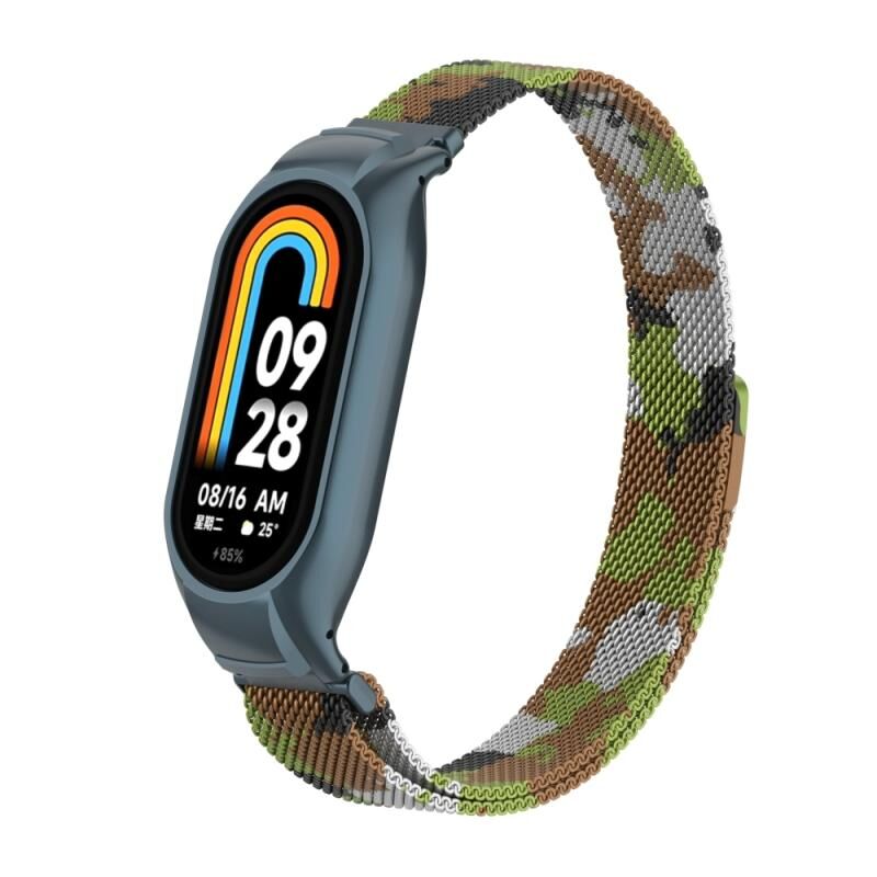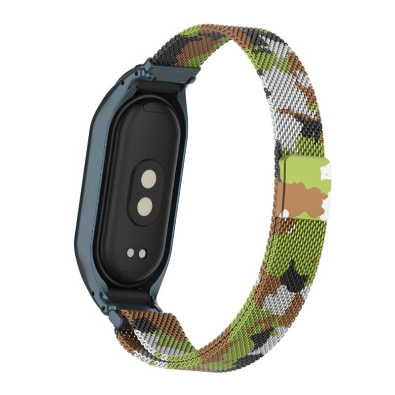 Για το Xiaomi Mi Band 8 Ενσωματωμένη μεταλλική θήκη + μαγνητική ζώνη ρολογιού Μιλάνο (Πράσινο γρασίδι)