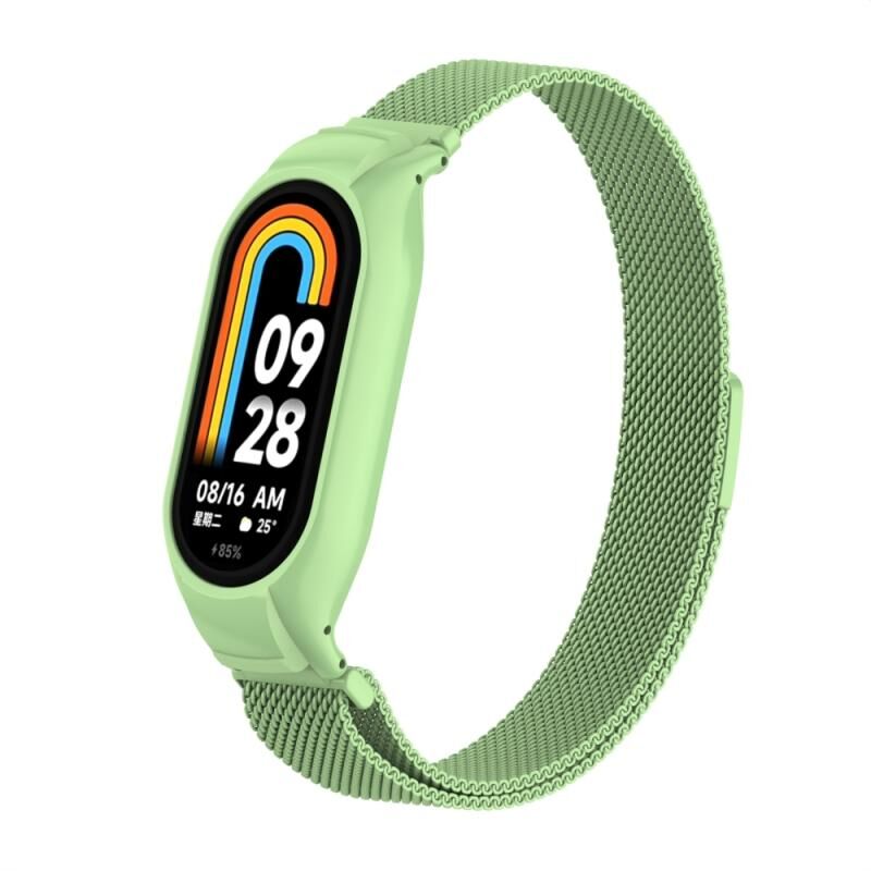 Για Xiaomi Mi Band 8 Ενσωματωμένη μεταλλική θήκη + μαγνητική ζώνη ρολογιού Μιλάνο (πράσινο χρώμα)