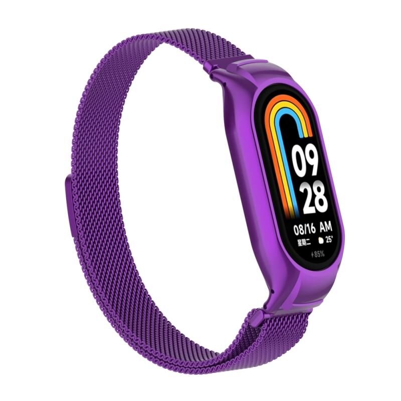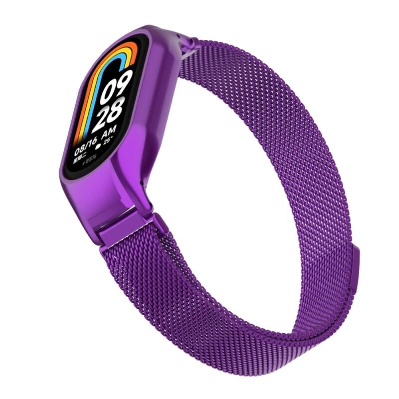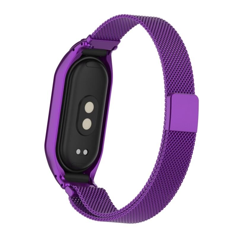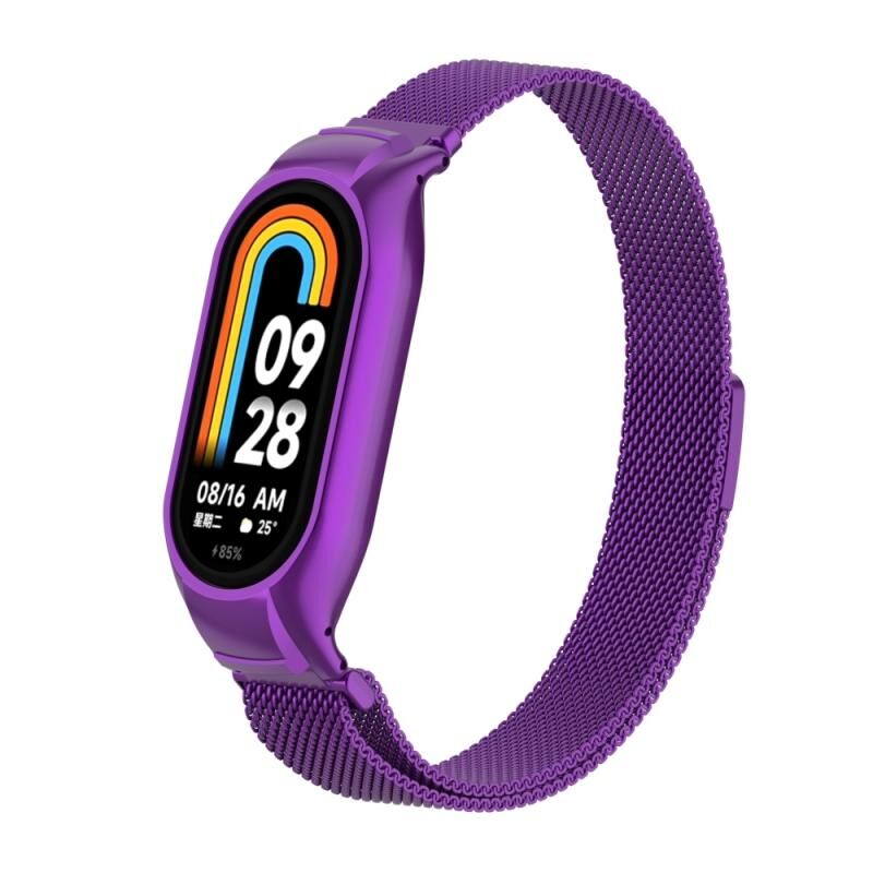 Για Xiaomi Mi Band 8 Ενσωματωμένη μεταλλική θήκη + μαγνητική ζώνη ρολογιού Μιλάνο (μωβ)