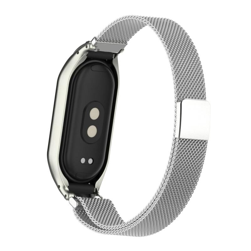 Για Xiaomi Mi Band 8 Ενσωματωμένη μεταλλική θήκη + μαγνητική ζώνη ρολογιού Μιλάνο (Ασημί)