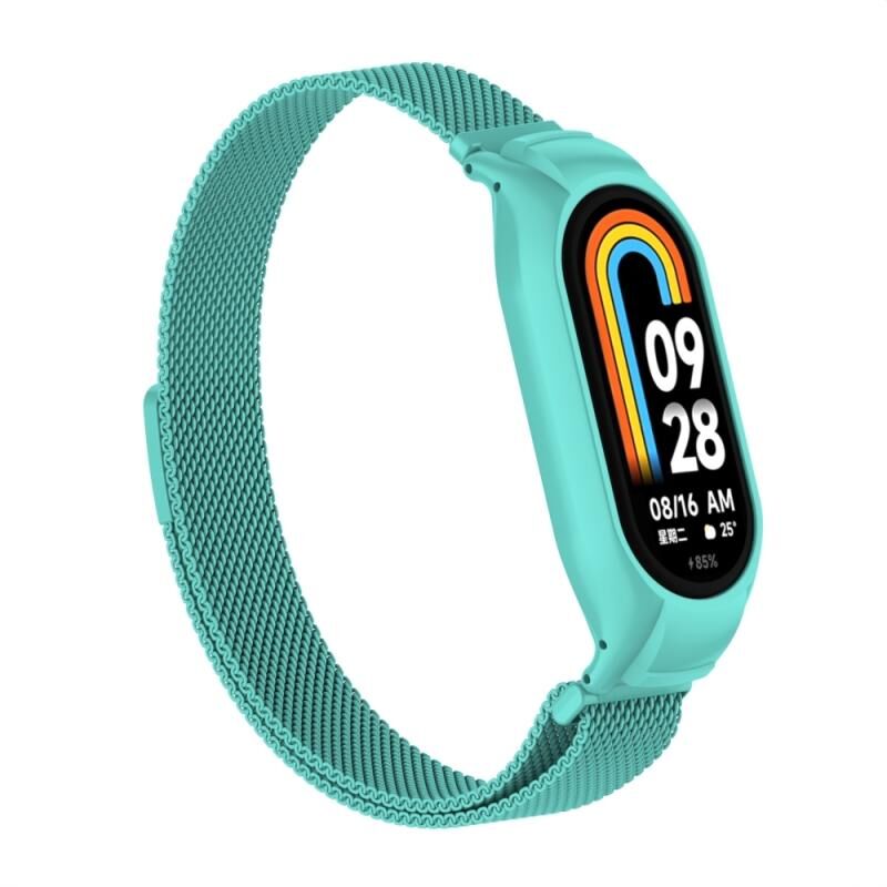 Για Xiaomi Mi Band 8 Ενσωματωμένη μεταλλική θήκη + μαγνητική ζώνη ρολογιού Μιλάνο (Tiffany Blue)