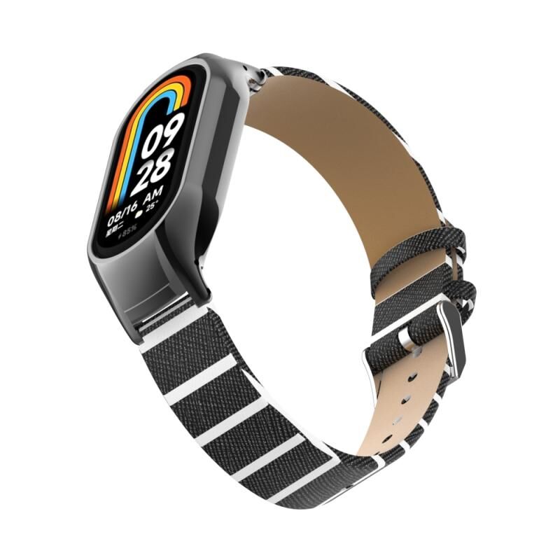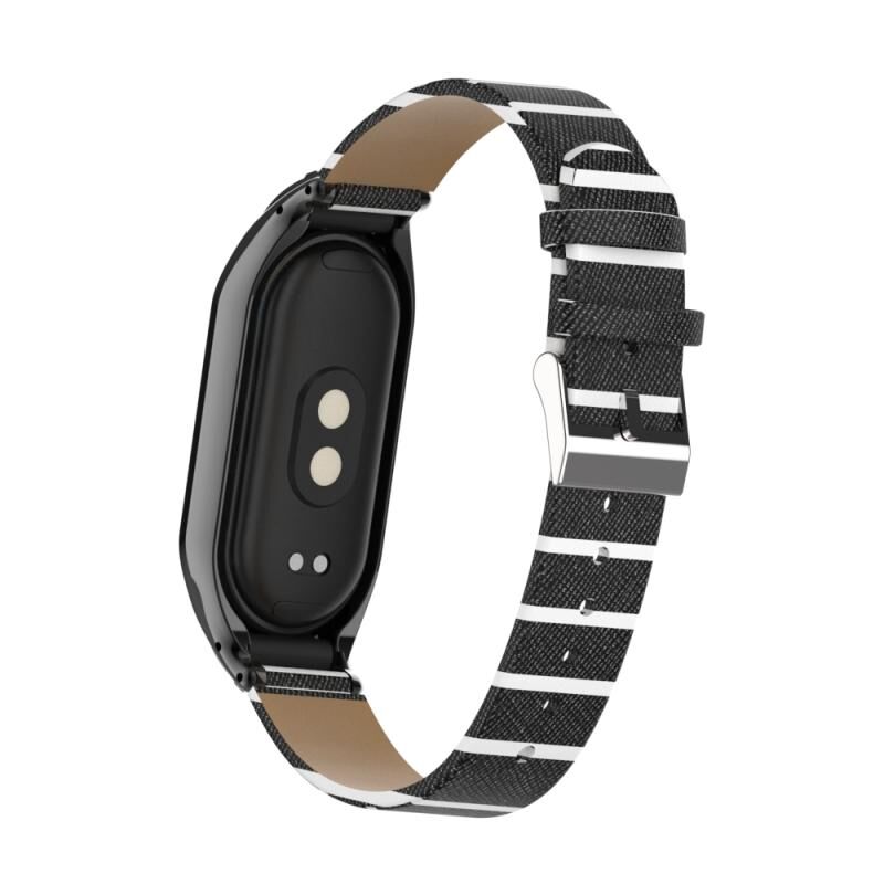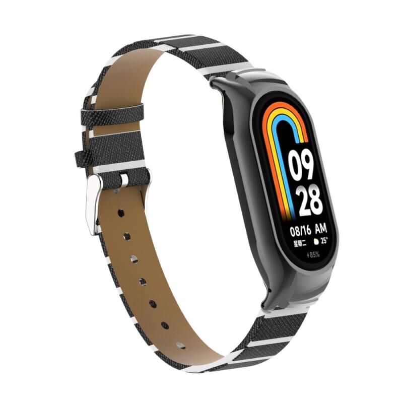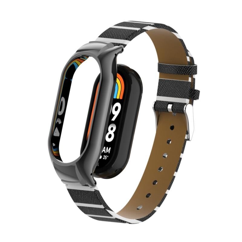 Για Xiaomi Mi Band 8 Ενσωματωμένη μεταλλική θήκη + Δευτερεύον χρώμα δερμάτινο λουράκι ρολογιού (μαύρο)