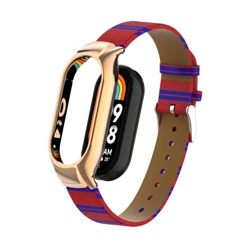 Για Xiaomi Mi Band 8 Ενσωματωμένη μεταλλική θήκη + Δευτερεύον χρώμα δερμάτινο λουράκι ρολογιού (κόκκινο)