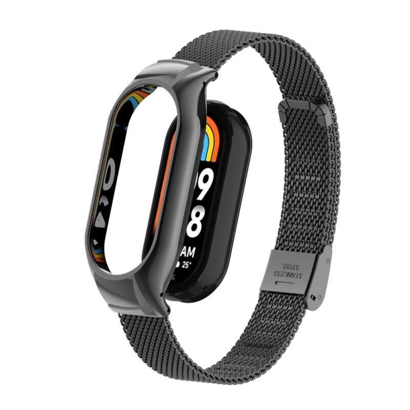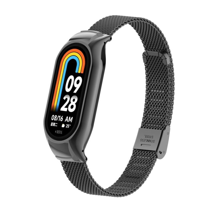 Για Xiaomi Mi Band 8 Ενσωματωμένη μεταλλική θήκη + ατσάλινη ζώνη ρολογιού με αγκράφα (μαύρο)