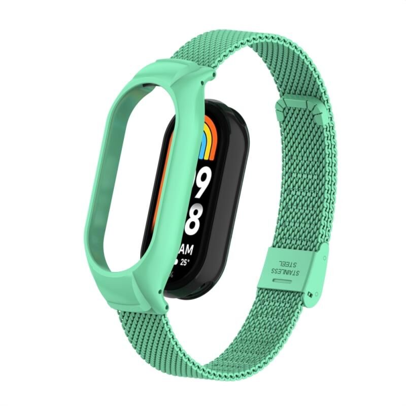 Για Xiaomi Mi Band 8 Ενσωματωμένη μεταλλική θήκη + ατσάλινη ζώνη ρολογιού με αγκράφα (μπλε θάλασσα)