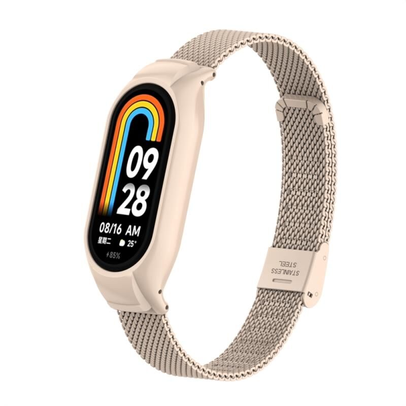 Για Xiaomi Mi Band 8 Ενσωματωμένη μεταλλική θήκη + ατσάλινη ζώνη ρολογιού με αγκράφα (Lotus Pink)
