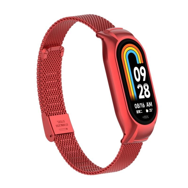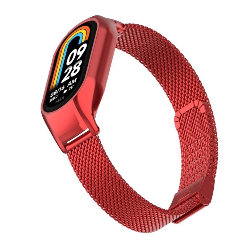 Για Xiaomi Mi Band 8 Ενσωματωμένη μεταλλική θήκη + ατσάλινη ζώνη ρολογιού με αγκράφα (κόκκινο)