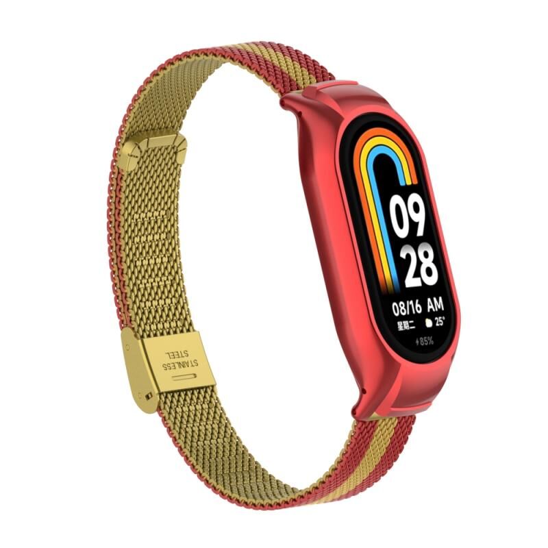 Για Xiaomi Mi Band 8 Ενσωματωμένη μεταλλική θήκη + ατσάλινη ζώνη ρολογιού με αγκράφα (κόκκινο+χρυσό)