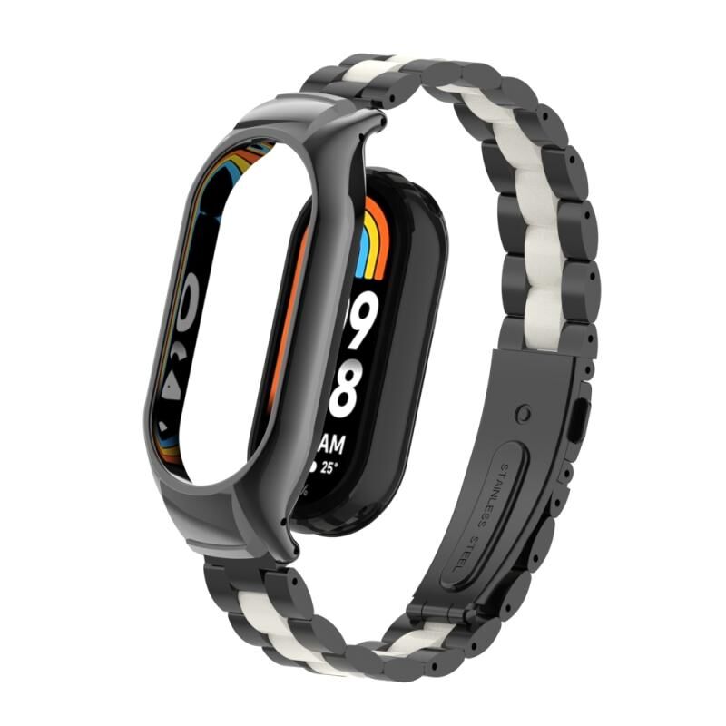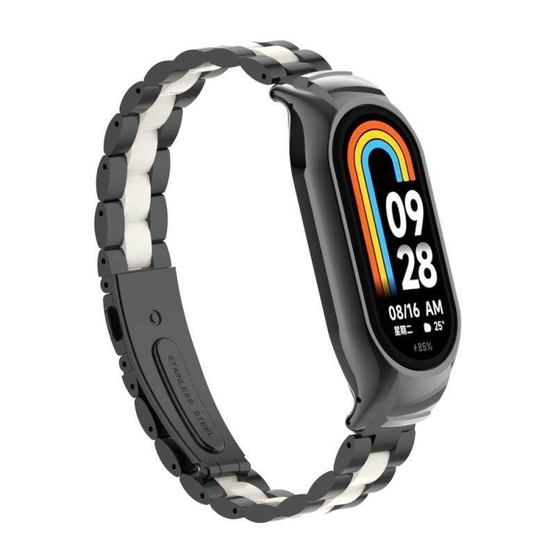 For Xiaomi Mi Band 8 Integrated Metal Case + Three-bead Watch Band(Black+White)