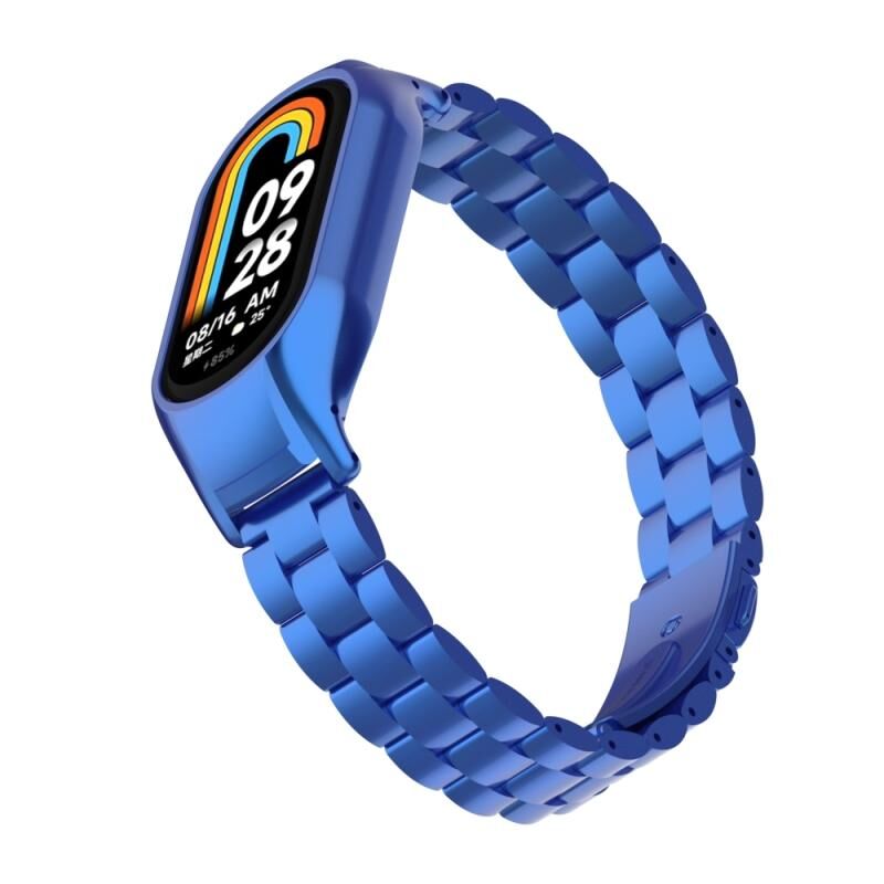 Για Xiaomi Mi Band 8 Ενσωματωμένη μεταλλική θήκη + ζώνη ρολογιού με τρεις χάντρες (μπλε)
