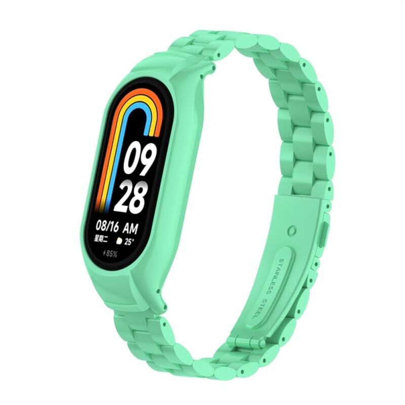 Για Xiaomi Mi Band 8 Ενσωματωμένη μεταλλική θήκη + ζώνη ρολογιού με τρεις χάντρες (μπλε θάλασσα)