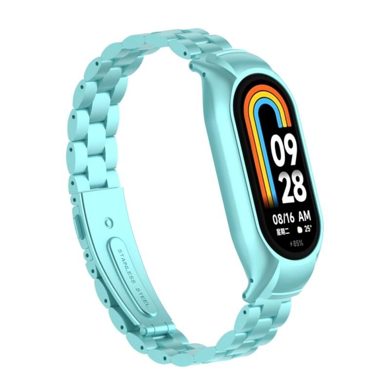 Για το Xiaomi Mi Band 8 Ενσωματωμένη μεταλλική θήκη + ζώνη ρολογιού με τρεις χάντρες (Cloud Blue)