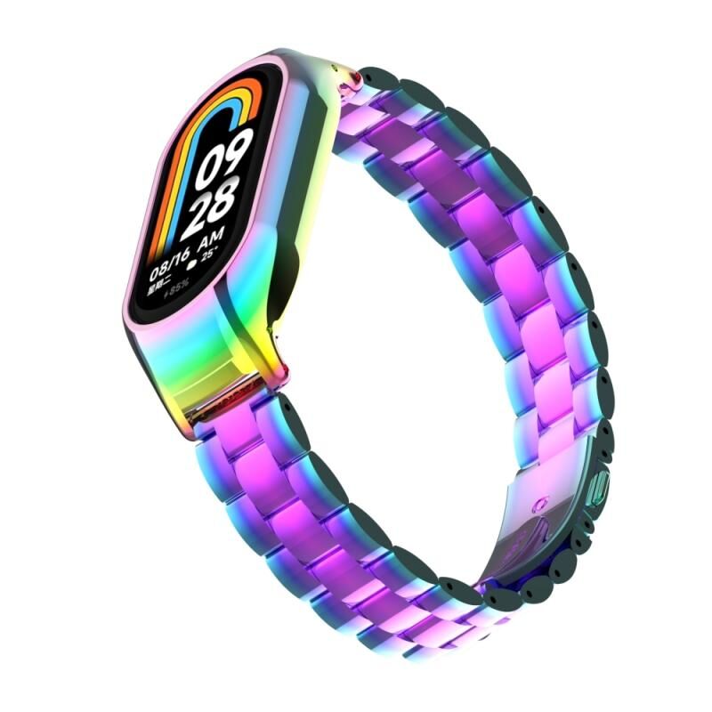 Για Xiaomi Mi Band 8 Ενσωματωμένη μεταλλική θήκη + Τρεις χάντρες ρολογιού (πολύχρωμο)