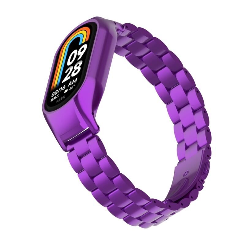 Για Xiaomi Mi Band 8 Ενσωματωμένη μεταλλική θήκη + ζώνη ρολογιού με τρεις χάντρες (μωβ)