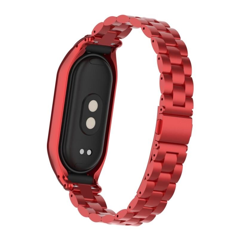Για Xiaomi Mi Band 8 Ενσωματωμένη μεταλλική θήκη + ζώνη ρολογιού με τρεις χάντρες (κόκκινο)