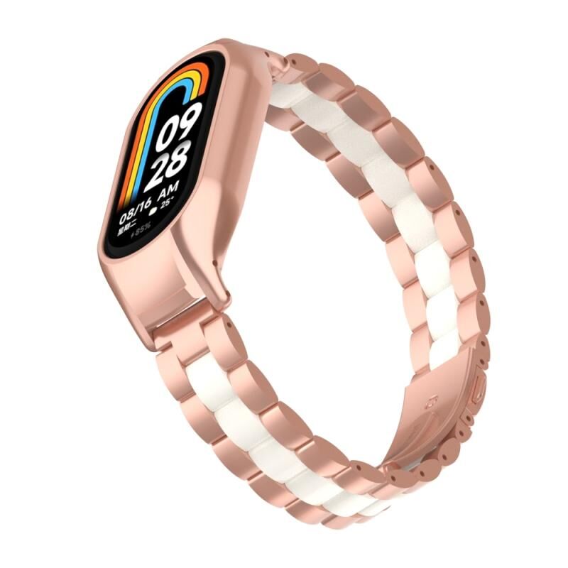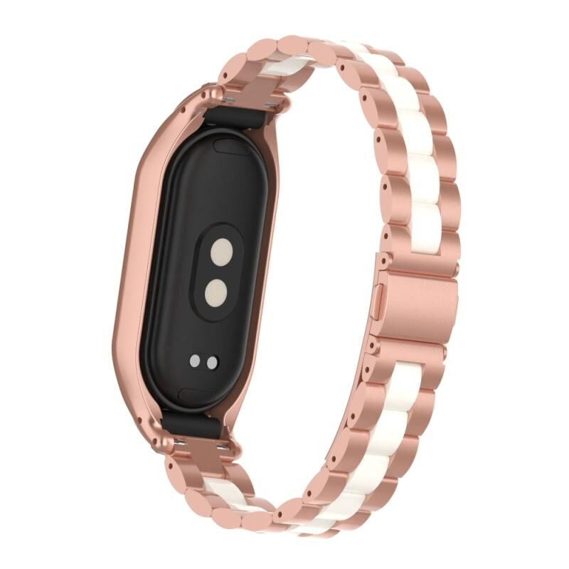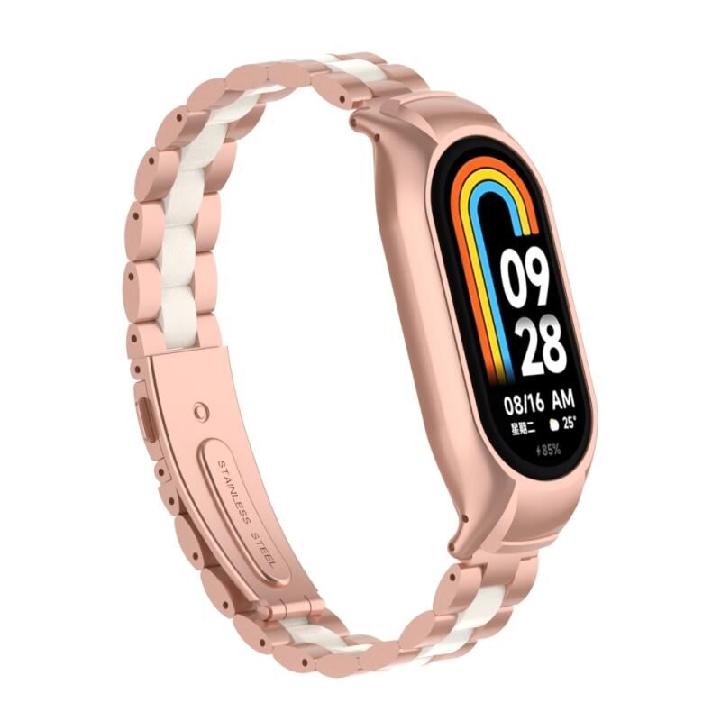 Για Xiaomi Mi Band 8 Ενσωματωμένη μεταλλική θήκη + Τρεις χάντρες ρολογιού (Rose Red+White)