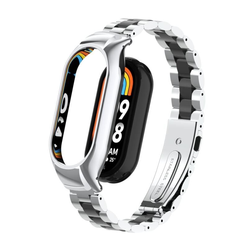 Για Xiaomi Mi Band 8 Ενσωματωμένη μεταλλική θήκη + Τρεις χάντρες ρολογιού (Ασημί+Μαύρο)