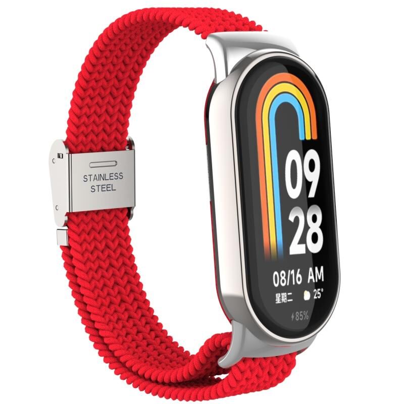 Για Xiaomi Mi Band 8 Μεταλλική κεφαλή + Ρυθμιζόμενη ζώνη ρολογιού από νάιλον με ατσάλινη πόρπη (κόκκινο)