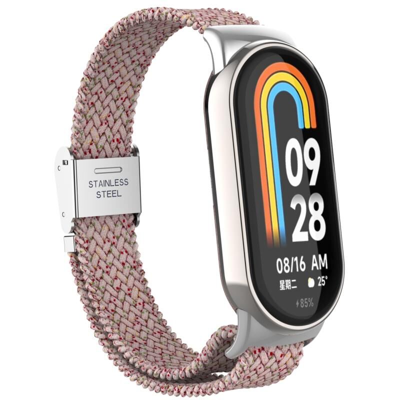 Για το Xiaomi Mi Band 8 Μεταλλική κεφαλή + Ρυθμιζόμενη ζώνη ρολογιού από νάιλον με ατσάλινη πόρπη (Starlight Pink)