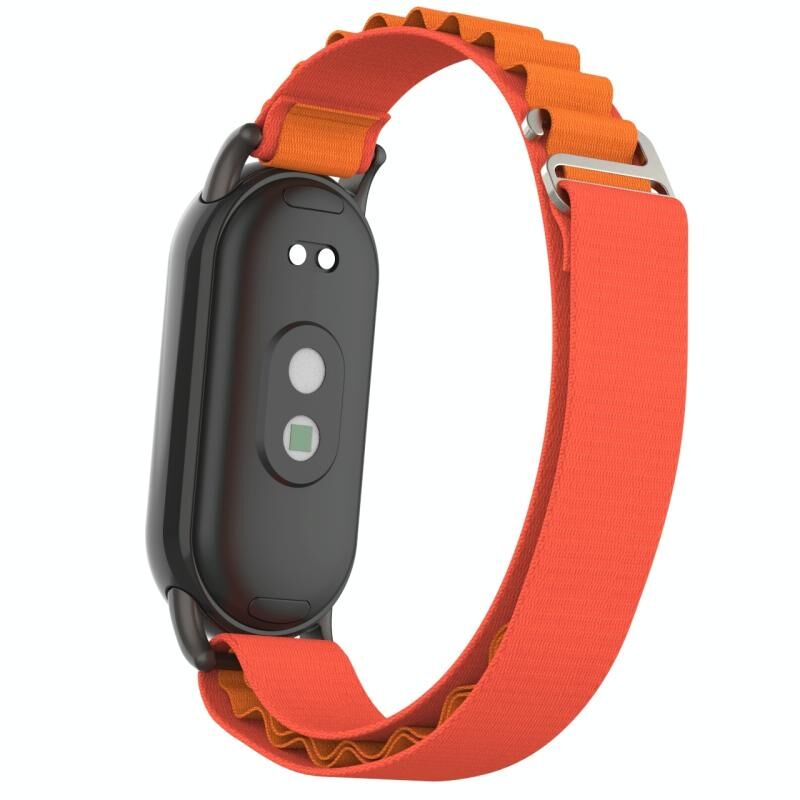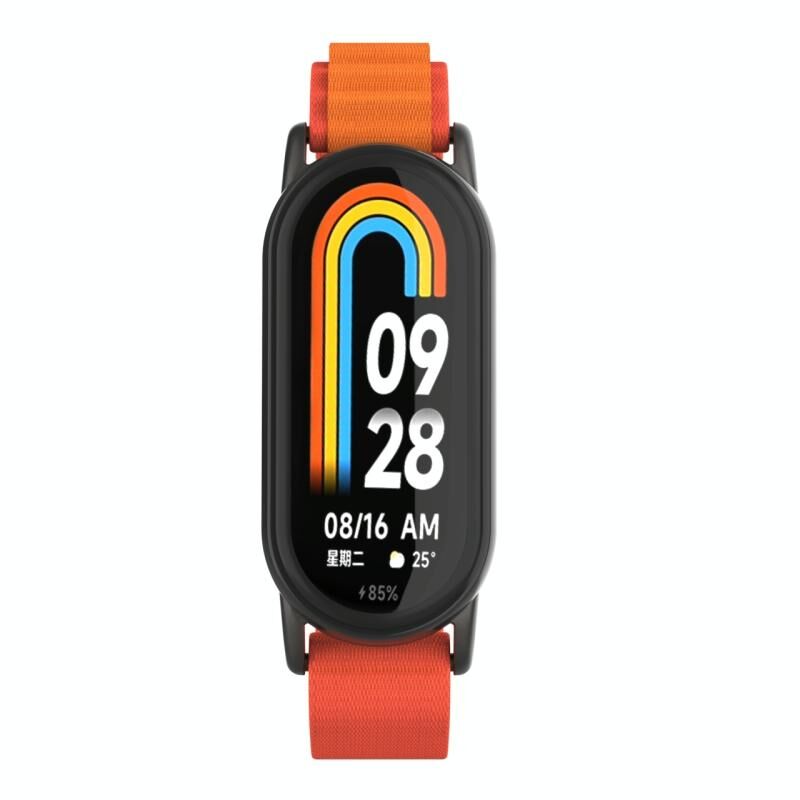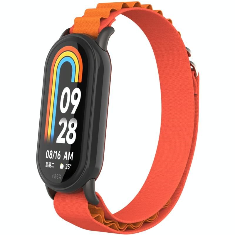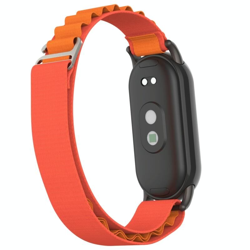 For Xiaomi Mi Band 8 Metal Plug Loop Nylon Watch Band(Black+Orange)