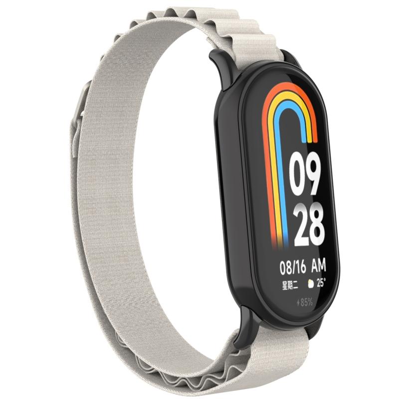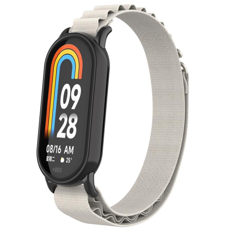 For Xiaomi Mi Band 8 Metal Plug Loop Nylon Watch Band(Black+Starlight)