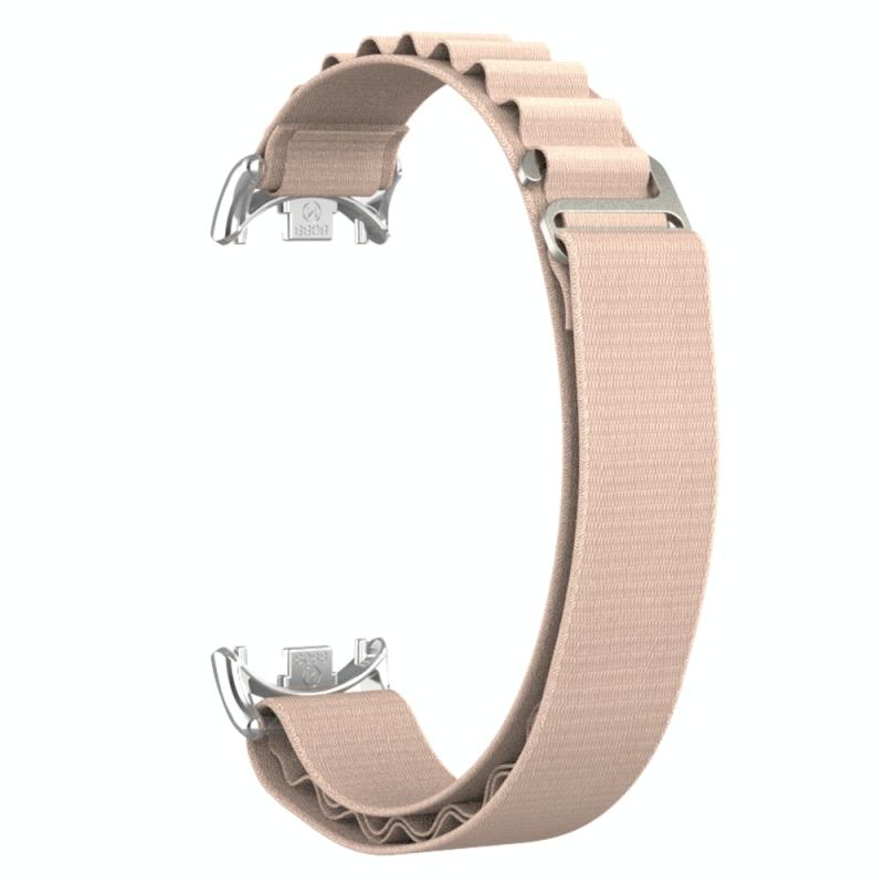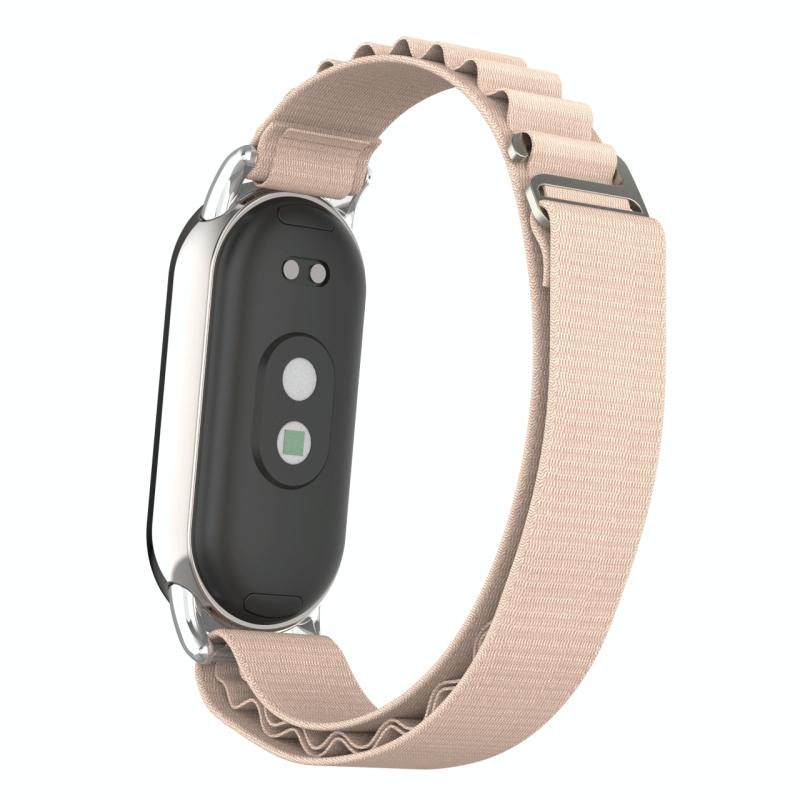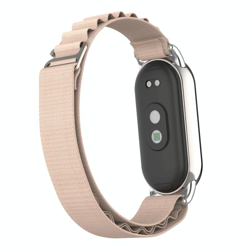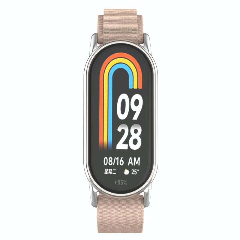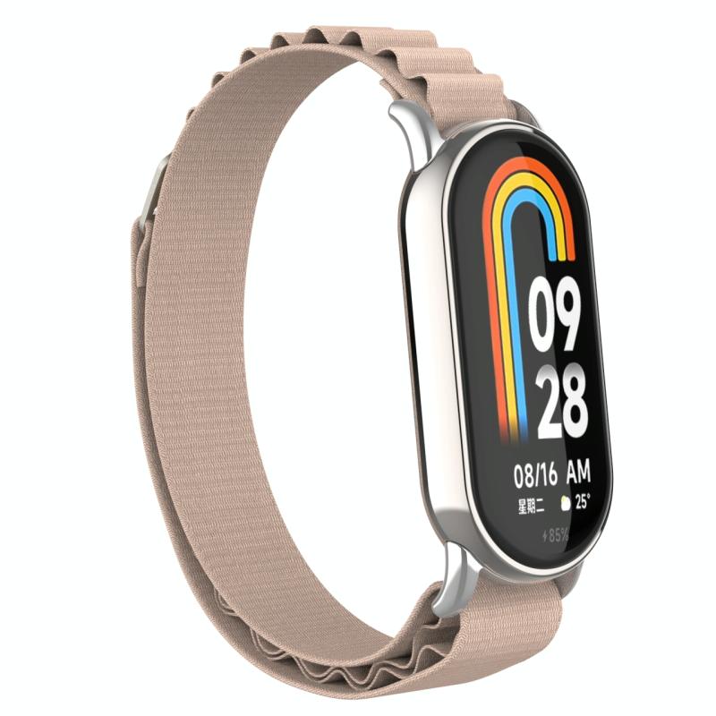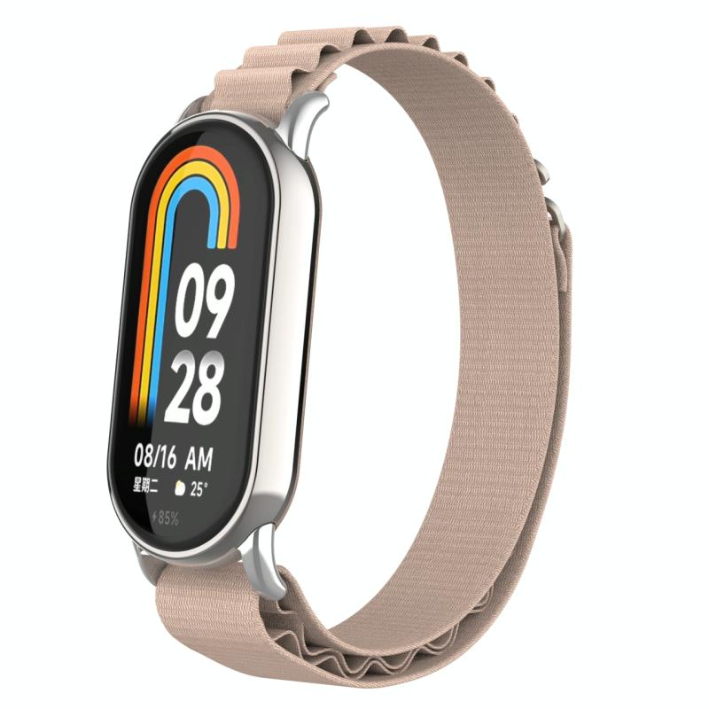 For Xiaomi Mi Band 8 Metal Plug Loop Nylon Watch Band(Silver+Apricot)