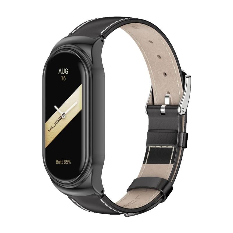 For Xiaomi Mi Band 8 Mijobs CS Case Genuine Leather Top Layer Cowhide Watch Band(Black+White) (MIJOBS)