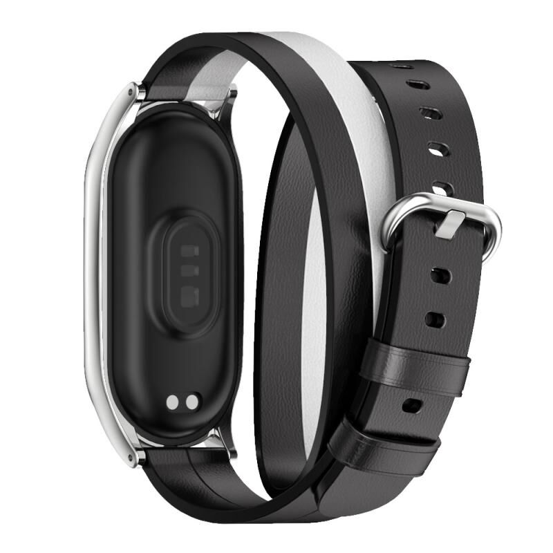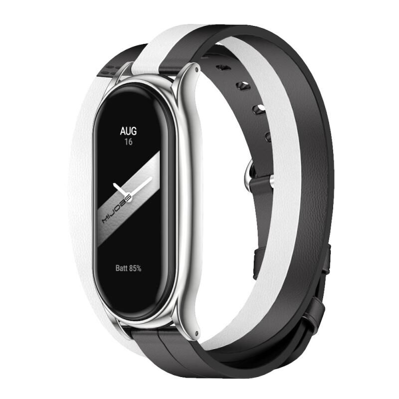 For Xiaomi Mi Band 8 Mijobs Plus Case Double-Loop Leather Watch Band(Black+White+Silver) (MIJOBS)