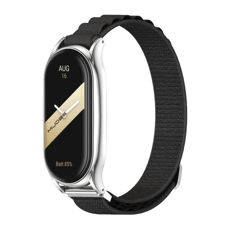 For Xiaomi Mi Band 8 Mijobs Plus Case Nylon Breathable Watch Band(Black Silver) (MIJOBS)