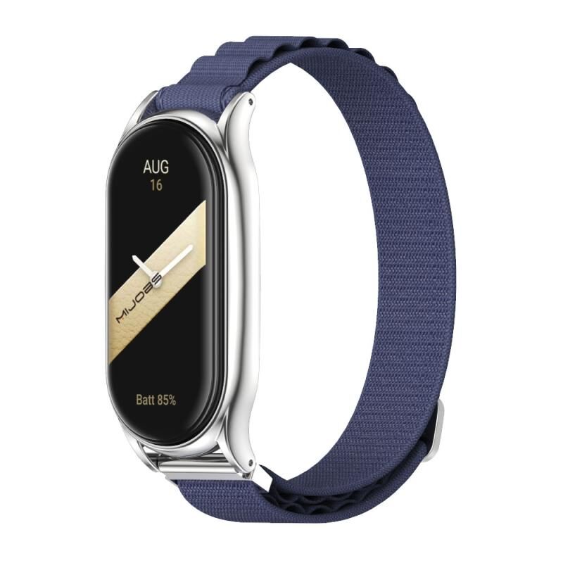 For Xiaomi Mi Band 8 Mijobs Plus Case Nylon Breathable Watch Band(Midnight Blue Silver) (MIJOBS)