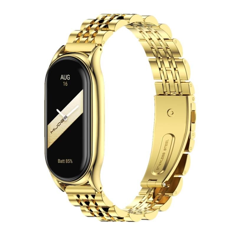 For Xiaomi Mi Band 8 Mijobs Plus Case Seven Bead Metal Stainless Steel Watch Band(Gold) (MIJOBS)