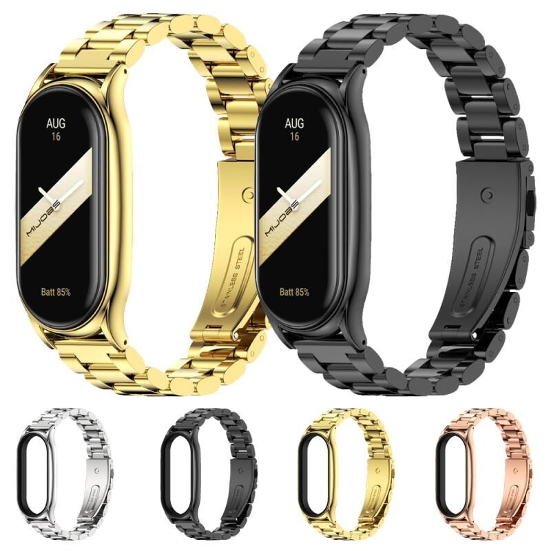 For Xiaomi Mi Band 8 Mijobs Plus Case Three Bead Metal Stainless Steel Watch Band(Black) (MIJOBS)