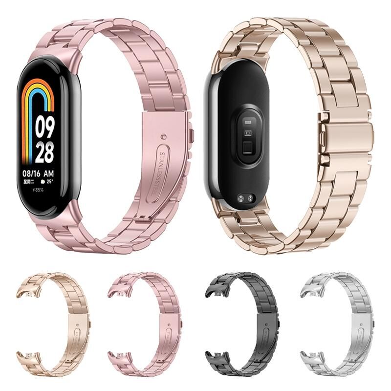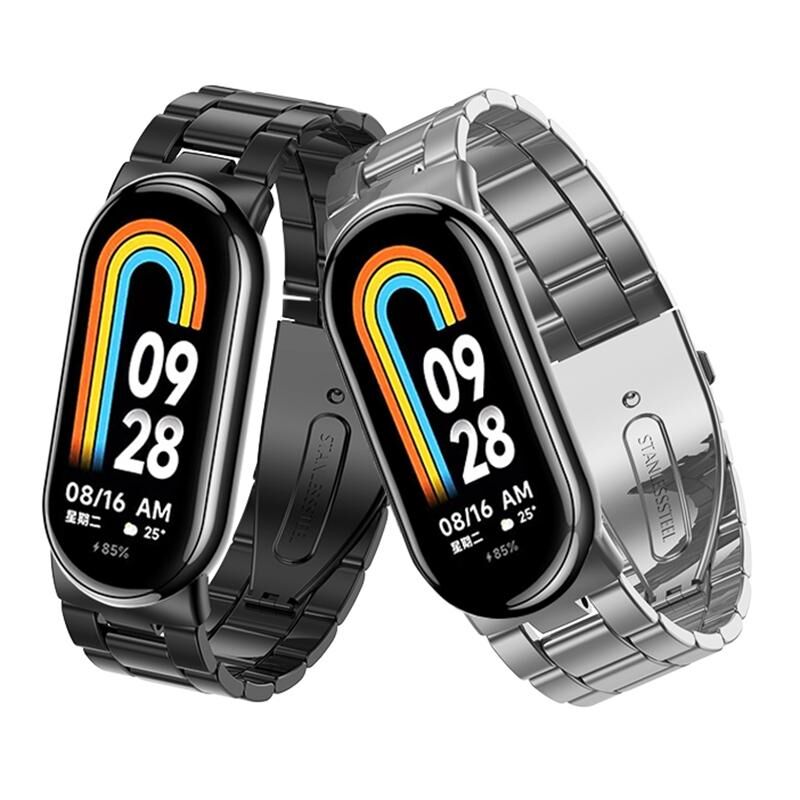 Για Xiaomi Mi Band 8 Μιλανέζικο μεταλλικό λουράκι ρολογιού με τρεις χάντρες (Μαύρο)