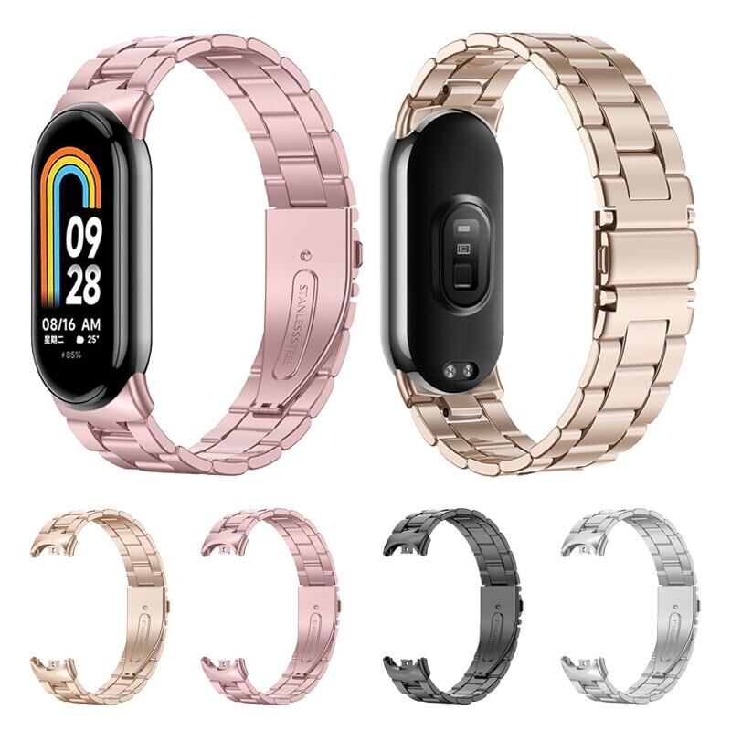 Για Xiaomi Mi Band 8 Μιλανέζικο μεταλλικό λουράκι ρολογιού με τρεις χάντρες (ροζ χρυσό)