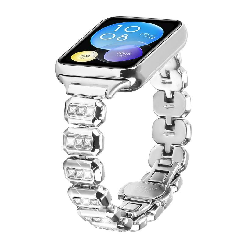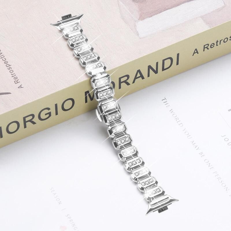 For Xiaomi Mi Band 8 Pro / Redmi Watch 4 Small Square Diamonds Butterfly Buckle Metal Watch Band(Silver)