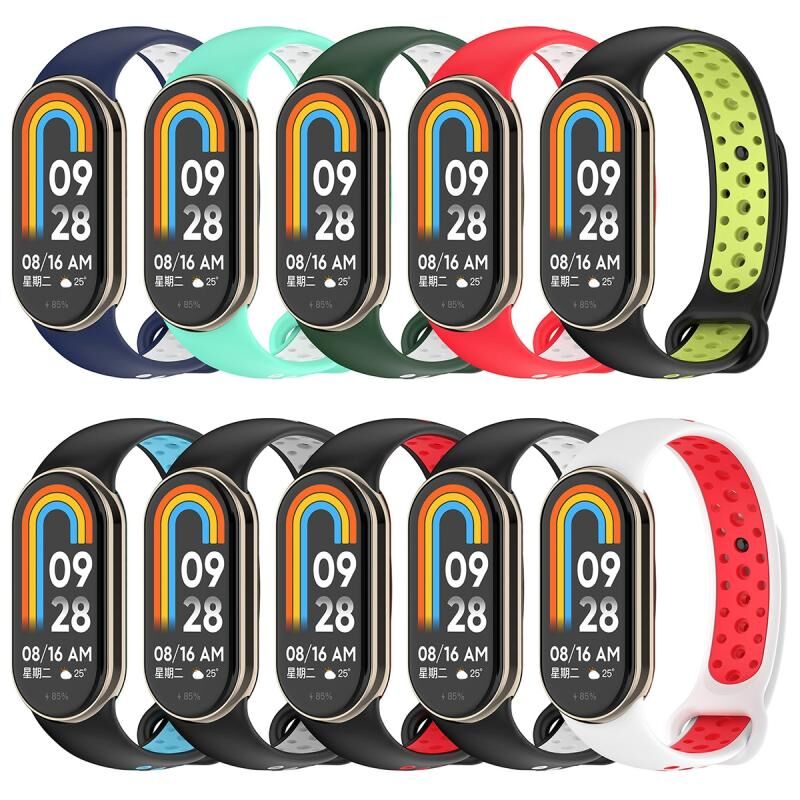 Για Xiaomi Mi Band 8 Δύο χρώματα καρφί πόρπη σιλικόνης ρολόι μπάντα ρολόι (Μεσάνυχτα μπλε λευκό)