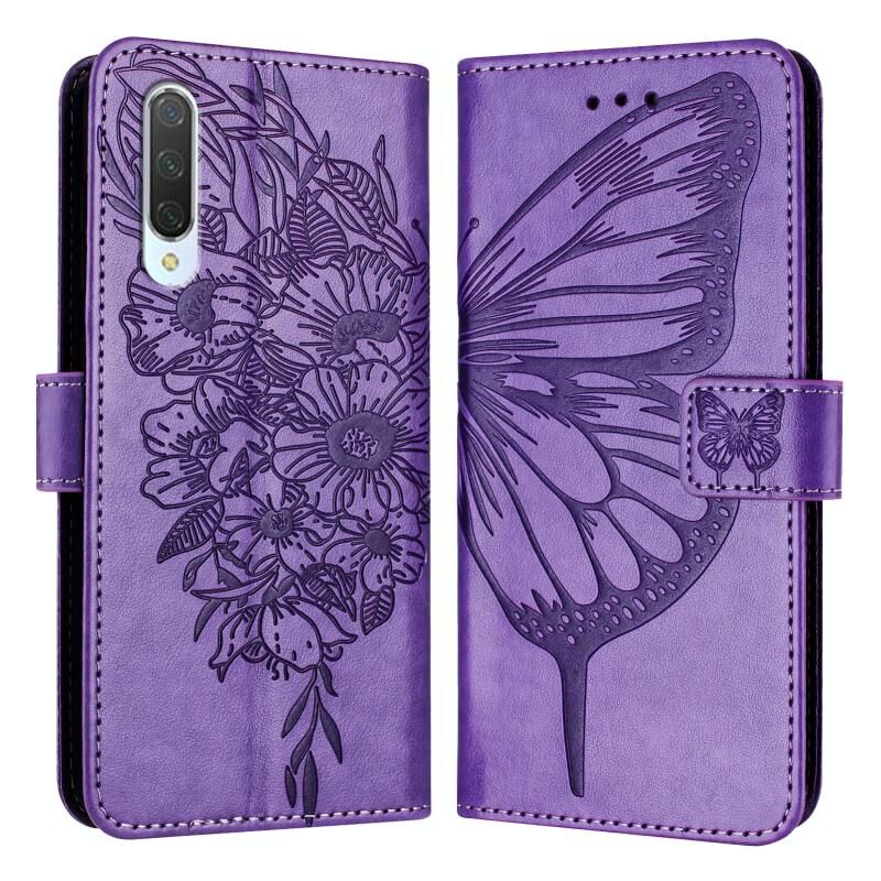 Για Xiaomi Mi CC9 / Mi 9 Lite ανάγλυφη πεταλούδα δερμάτινη θήκη τηλεφώνου (μωβ)