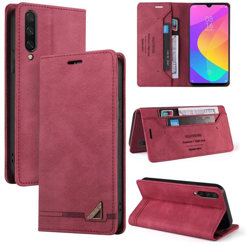 Για Xiaomi Mi CC9 / Mi 9 Lite Skin Feel Anti-theft Brush Horizontal Flip Leather Case με θήκη & υποδοχές καρτών & πορτοφόλι (Wine Red)