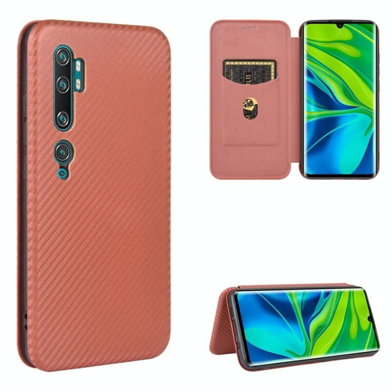 Για Xiaomi Mi CC9 Pro Carbon Fiber Texture Horizontal Flip TPU + PC + PU Leather Case με υποδοχή κάρτας (καφέ)