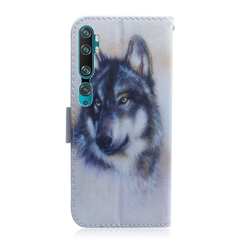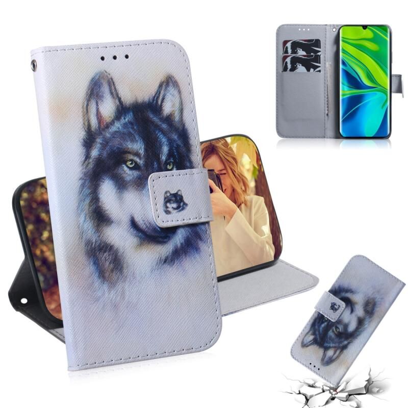 Θήκη δέρματος οριζόντιας αναδίπλωσης με μαγνητική έλξη και συνδυαστικό σχέδιο για Xiaomi Mi CC9 Pro / Note 10 / Note 10 Pro, με βάση στήριξης & υποδοχή κάρτας & πορτοφόλι (Λευκός Λύκος)