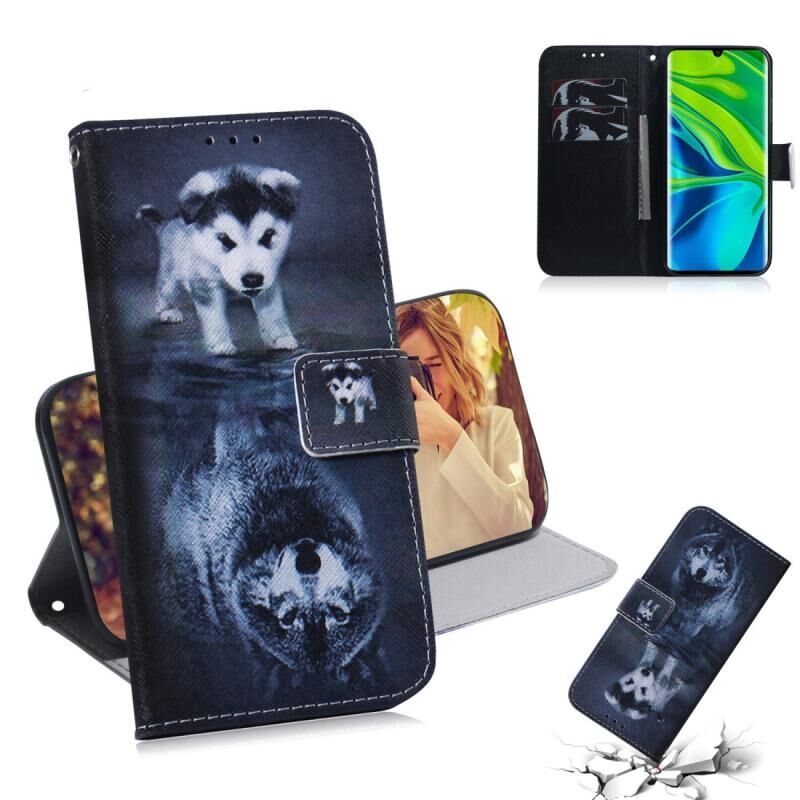 Θήκη δέρματος οριζόντιας αναδίπλωσης με μαγνητική έλξη και συνδυαστικό σχέδιο για Xiaomi Mi CC9 Pro / Note 10 / Note 10 Pro, με βάση στήριξης & υποδοχή κάρτας & πορτοφόλι (Λύκος και Σκύλος)