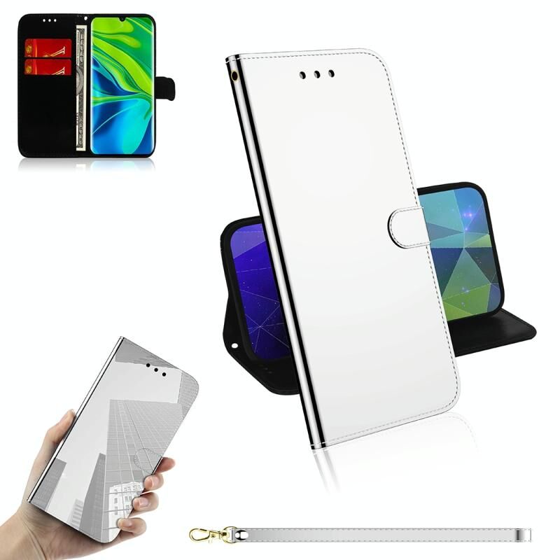 Για Xiaomi Mi CC9 Pro / Note 10 / Note 10 Pro Δερμάτινη Θήκη Flip με Μαγνητικό Κλείσιμο, Λουρί & Θήκη Κάρτας (Ασημί)