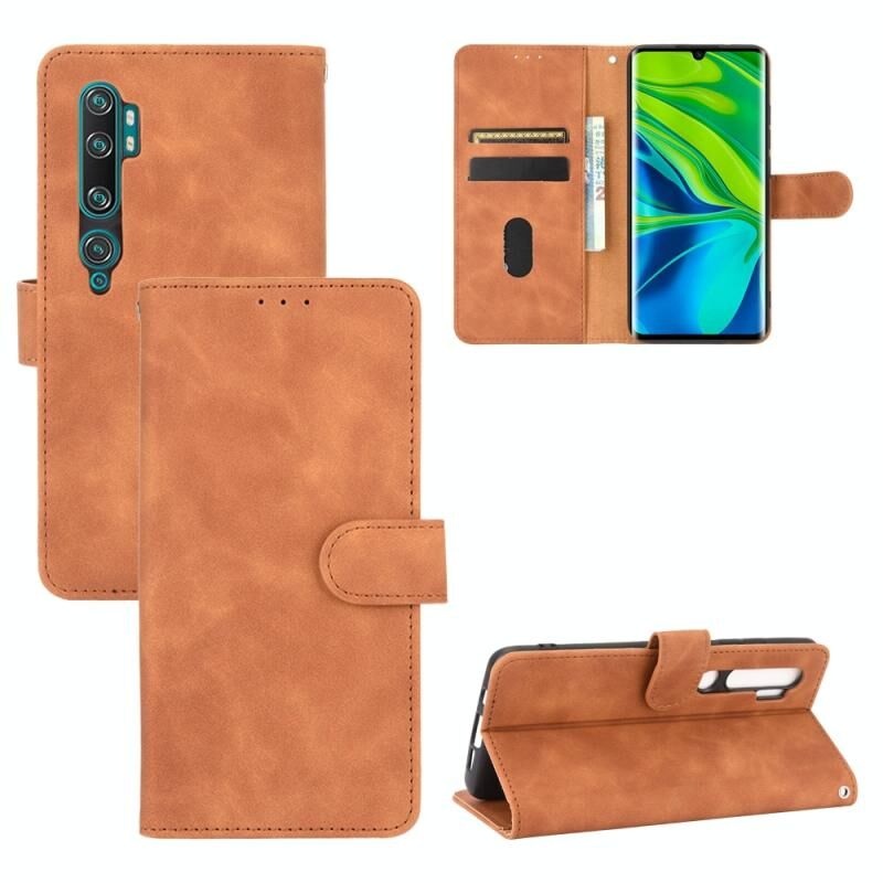 Για Xiaomi Mi CC9 Pro Solid Color Skin Feel Μαγνητική πόρπη οριζόντια Flip μοσχάρι υφή PU δέρμα υπόθεση με κάτοχο & υποδοχές καρτών & πορτοφόλι (καφέ)