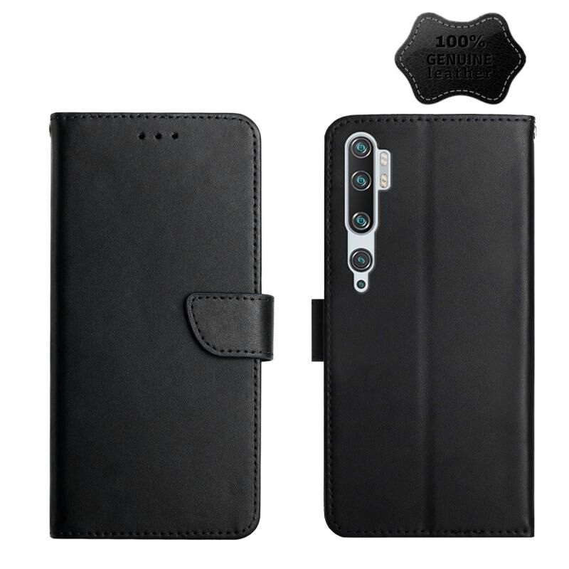 Θήκη τηλεφώνου οριζόντιας αναδίπλωσης από γνήσιο δέρμα για Xiaomi Mi Note 10, ανθεκτική στα δακτυλικά αποτυπώματα (Μαύρο)