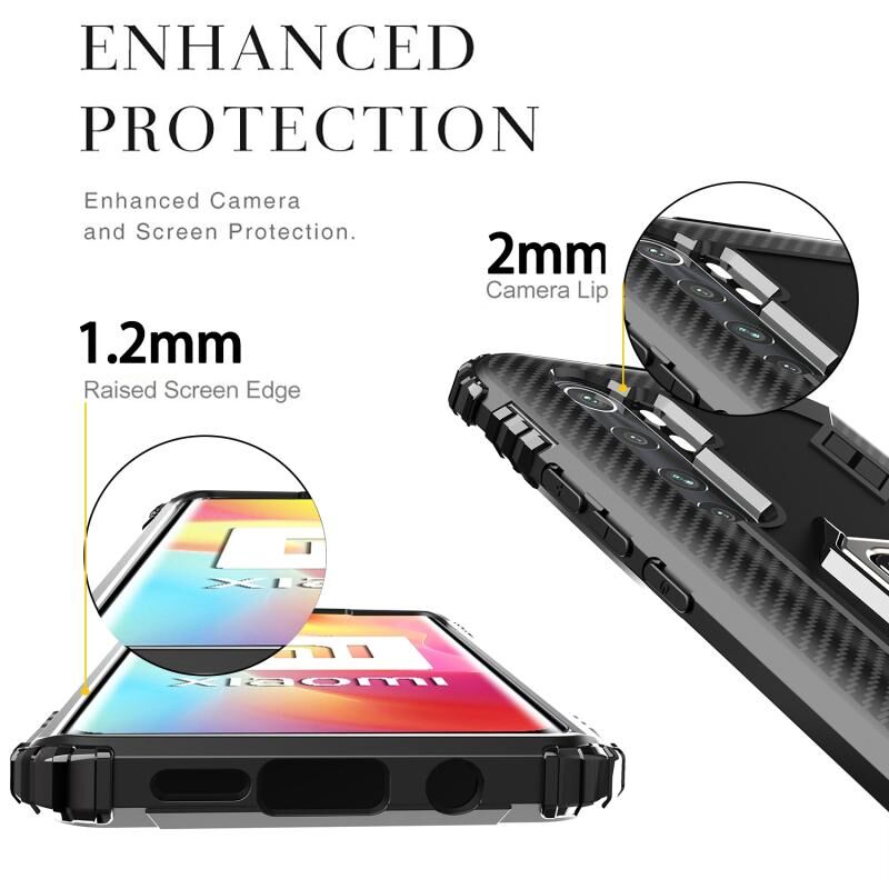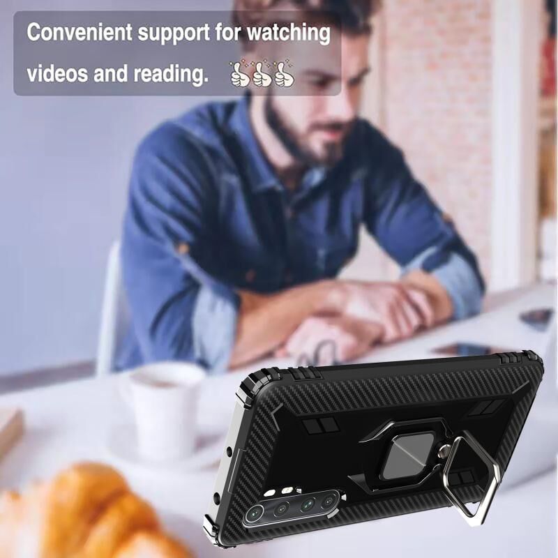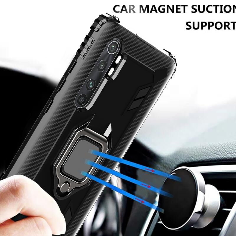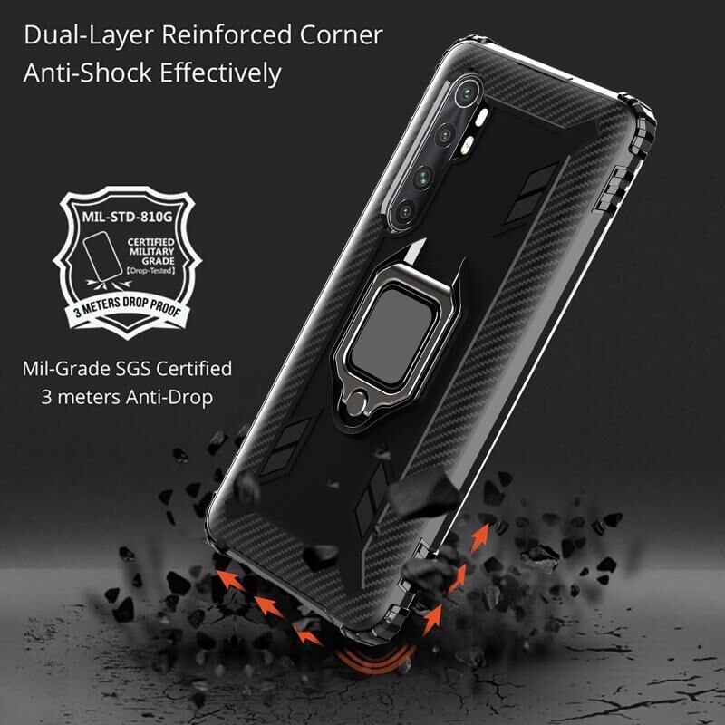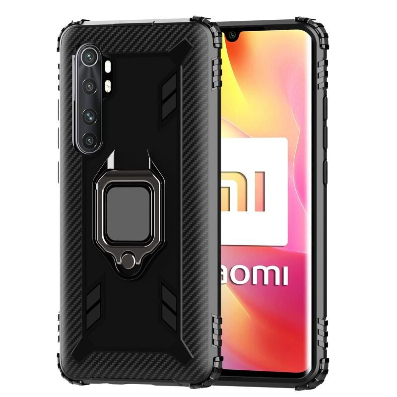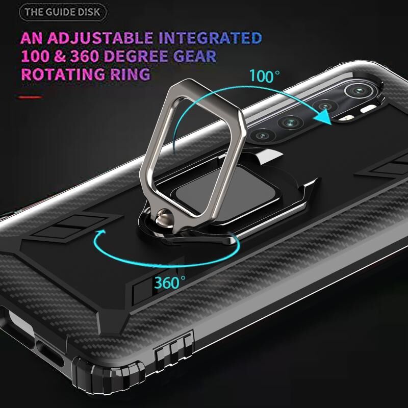 Για Xiaomi Mi Note 10 Lite Προστατευτική θήκη από ανθρακονήματα με 360 μοίρες περιστρεφόμενη θήκη δακτυλίου (Μαύρο)